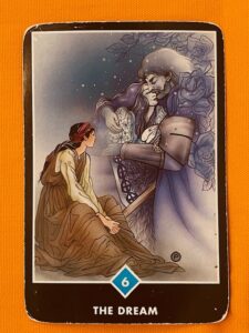 このカードには二つの意味があって、一つは理想や夢を描いてばかりで現実逃避していては、あなたの人生が虚しいものになってしまいますよ、自分の置かれた立場や現状をちゃんと把握して、もっと現実を見ましょう!という意味(白馬に乗った王子様は現れる??)。もう一つは、余りにも日常生活が現実的過ぎることの連続ならば、たまには理想や夢を描いて息抜きをして、良い意味での現実逃避をしてみませんか?という意味。さてあなたにはどちらの意味が当てはまりそうですか?どちらを選ぶのが適切か、自身を直視してみましょう。