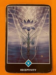 このカードは、水と感情という女性的なものを表しています。受け取るために両腕を上へと伸ばし、純粋な受容性を妨げる、攻撃的な心を持ち合わせていません。どのような期待も要求もなく、すべてのものに感謝するのです。このカードはあなたに、すべてを受け入れること、受身であることを促しています。それは待つことと聴くことという意味でもあります。ただし、あまりにも受け入れが過ぎてしまうと、自分の容器が自分のために使えなくなってしまいますから、ある程度は自分を護ることも大切です。