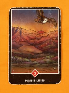 この画像の中の鷲があなたです。あなたは夜明け間近の空に向かって、高く舞い上がります。高く上がれば上がるほど視界は広く、遠くまで見通すことができます。山あいからは朝日が昇り、可能性に満ちた今日の始まりを告げています。あなたは今、そういう状態にいることを伝えられているのです。今はまだ夜明け前の夜が続き、どこを見ても真っ暗で、灯りも見えない状態かも知れません。でも、あなたが知らない内に夜は朝に主導権を渡し、そっと去っていく準備をしているのです。大きな可能性。待っていてください。