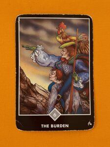 あなたの背負った荷物はとてつもなく大きくて、あなたに重く圧し掛かっているようです。中にはあなたが背負う必要のないものまで乗せられて、フゥフゥと重さに耐えています。それなのに、これからそのままの体勢で切り立った崖を登れと命令されています。ちょっと待って。立ち止まって考えて。その荷物も崖を登ることも、あなたがすべきことですか?あなたは今、背中の荷物をそこに下ろして、身軽になって自分の行く道へ進むときです。その勇気とパワーを持ちましょう!