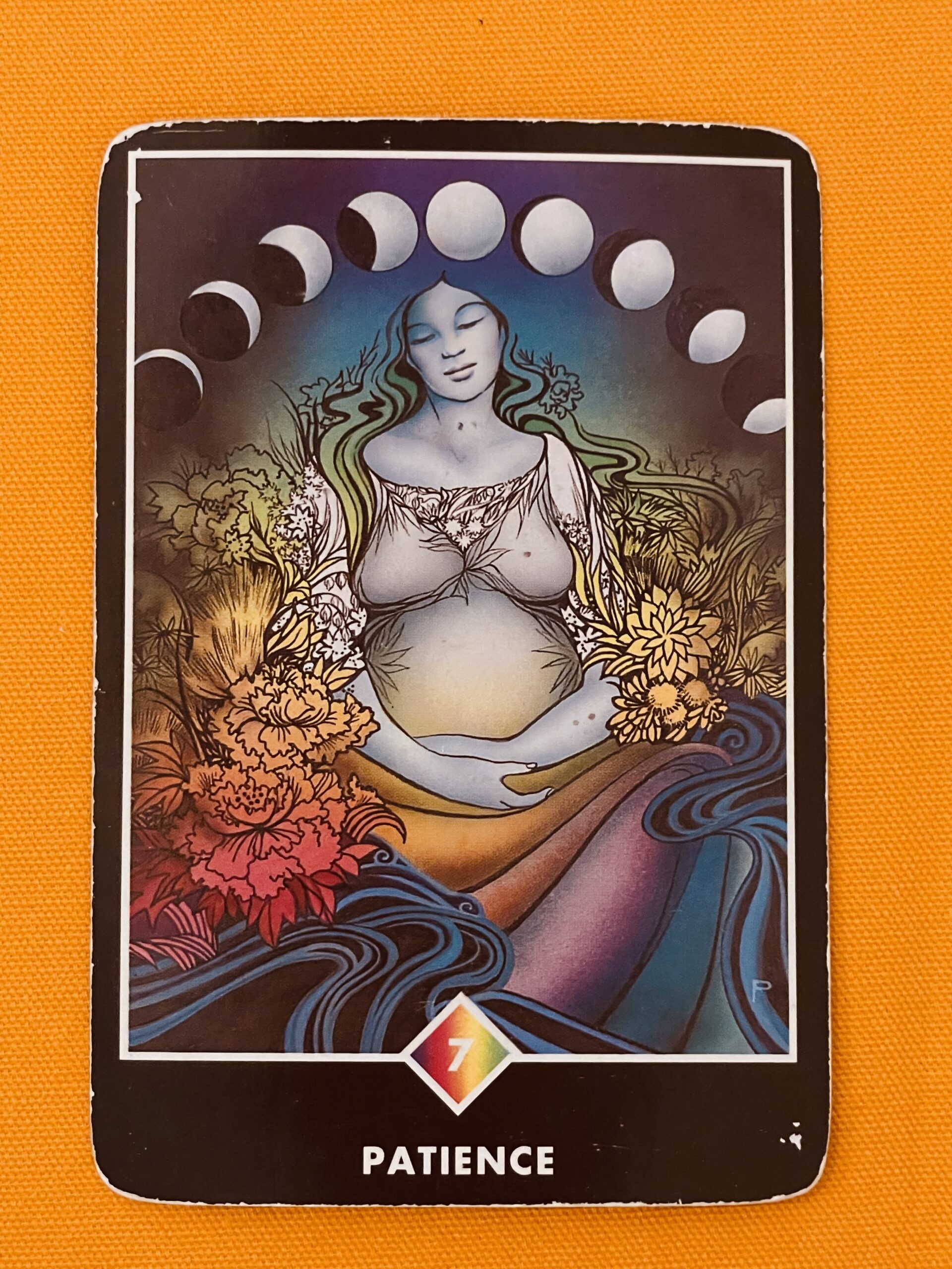 あとは待つしかない、というときがあります。蒔かれた種は明日に花咲くことはなく、子宮に宿った命が明日に生まれることはないように。このカードは、今こそただ油断せずに、忍耐強く、待つことだけが求められていると告げています。けれどもそれはただ眠って待つものではなく、重大な何かに備える時なのだということでもあるのです。夜明け前の暗黒のように、やがて太陽が顔を出し新しい1日が始まるのに似ています。あとは待つしかないけれど、そこに成就が潜んでいることを知ってください。